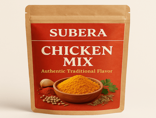 Bring the authentic taste of home-cooked chicken dishes to your table with Subera Chicken Mix. Crafted from a traditional blend of spices—turmeric, chili, cumin, coriander, garlic, and warm aromatic herbs—this ready mix ensures rich flavor in every bite. Perfect for curries, grills, or stir-fries, it saves you time while preserving the heritage of authentic cooking.